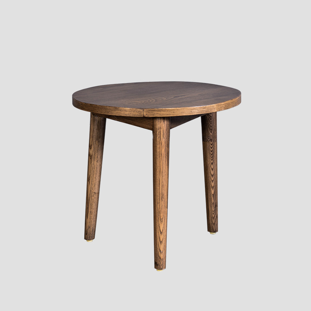 This round side table adds a touch of authenticity and sophistication to your seating area. Its classic light brown wood polish enhances the sleek three-legged design, creating a seamless blend with its surroundings. Effortlessly complementing your furniture, it becomes an integral part of your stylish space