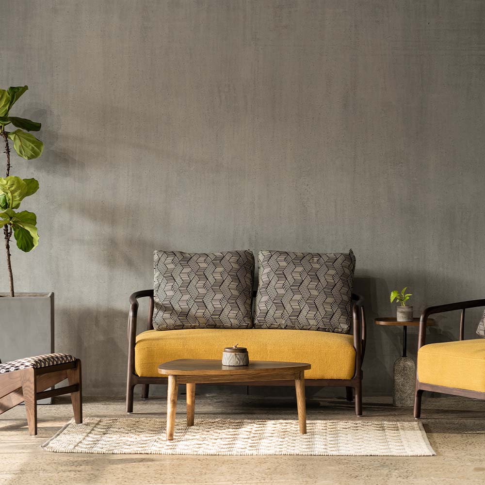 Infuse your comfort zone with positivity and warmth by incorporating this delightful sofa set into your home. Its vibrant base exudes joy, while the finely polished wood elevates its elegance, making it a standout piece. The lightweight design adds practicality, making it a perfect blend of style and functionality.
